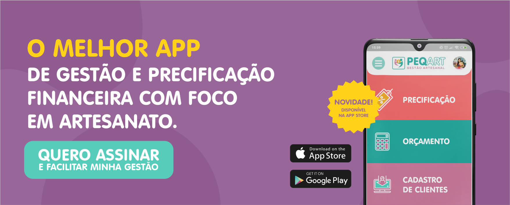 O PeqArt é um app de Precificação e Gestão do seu negócio de Artesanato.